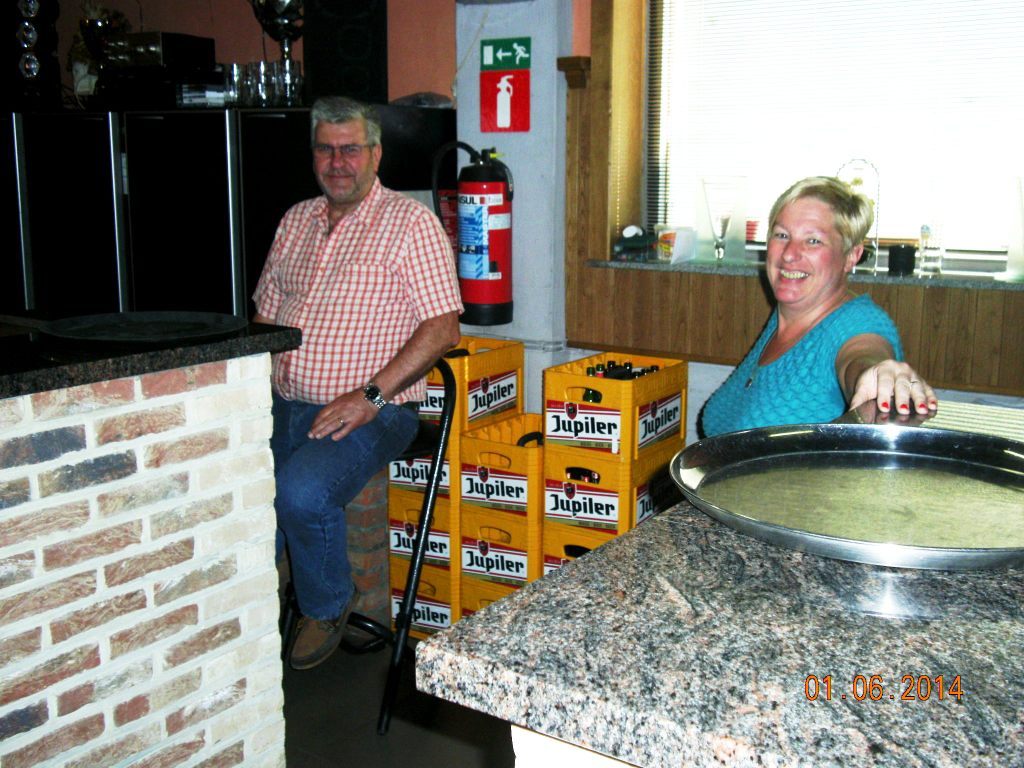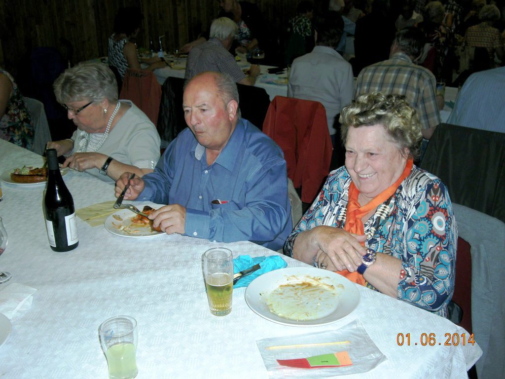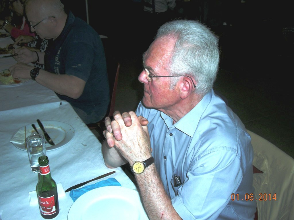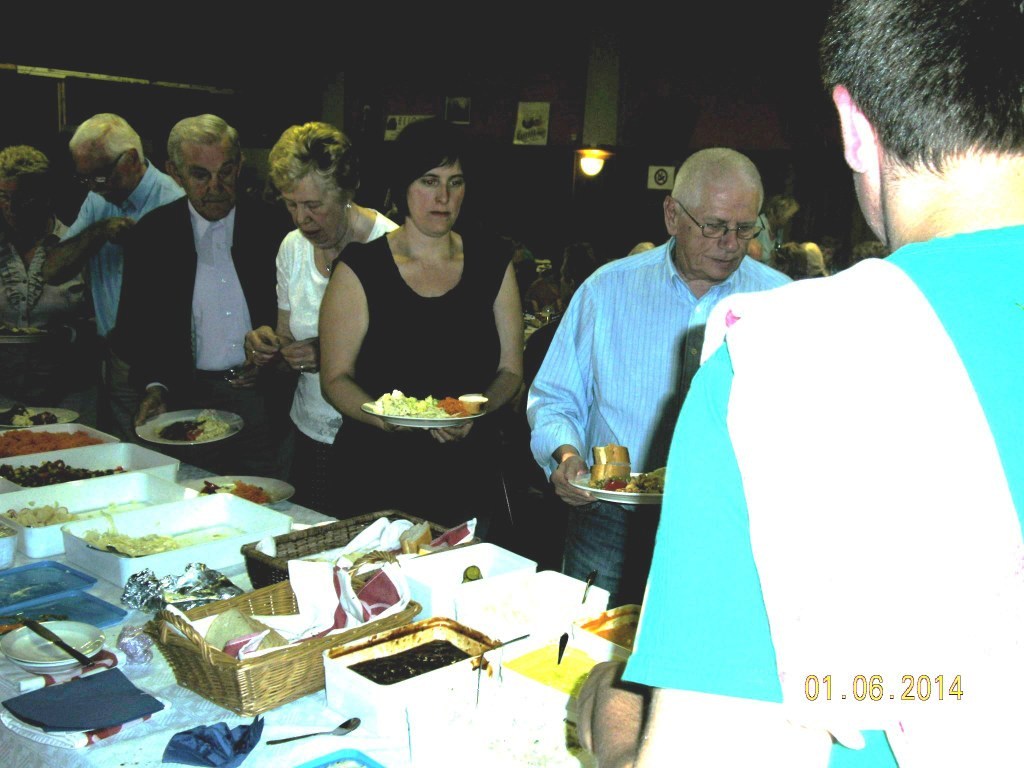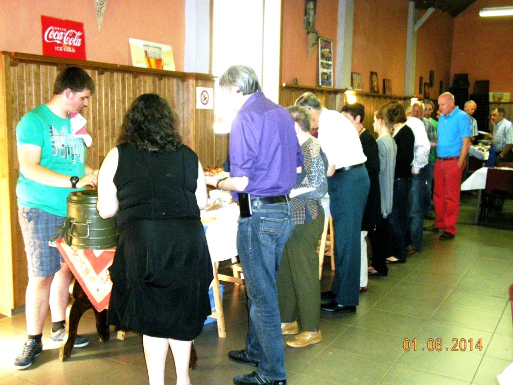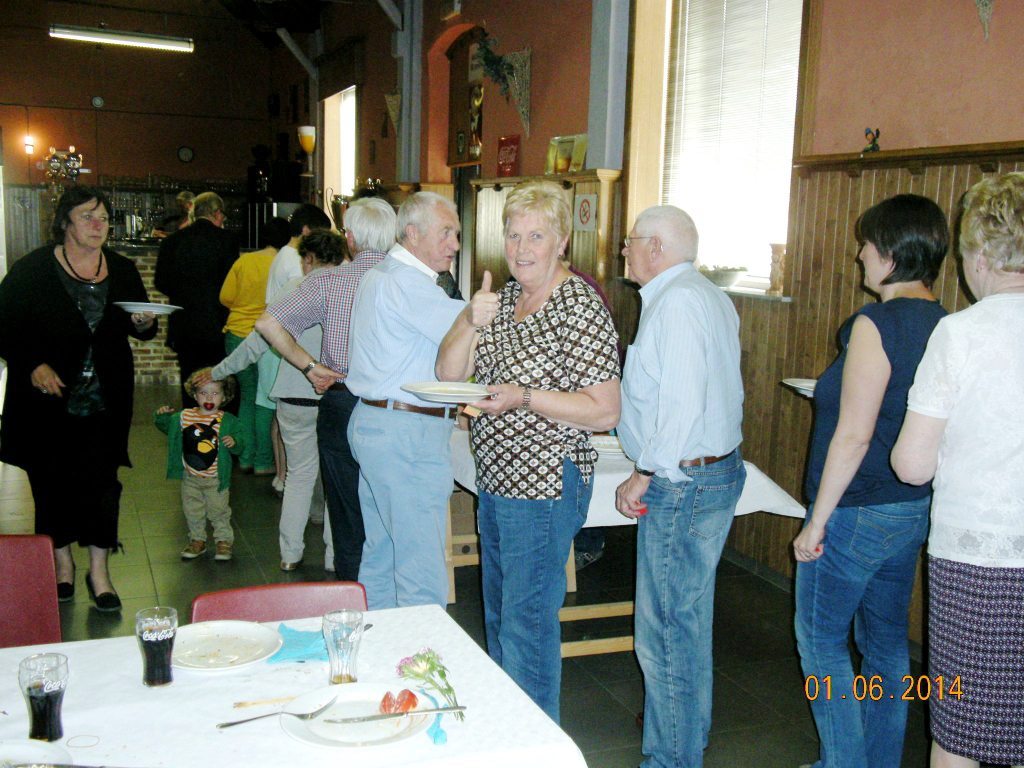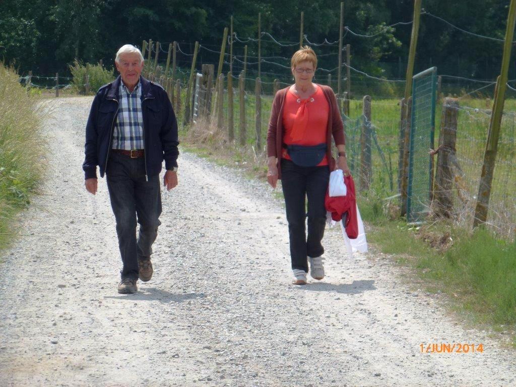 Meldert, zondag 1 juni 2014. Het weer viel mee niet alleen om te wandelen maar ook om de barbecue buiten op te stellen. Ruim 109 deelnemers mochten genieten van de natuur (wandelen)kaarten en smullen van de lekkere worsten, brochettes en koteletten. Peter Merckx (eveneens gepensioneerd) zorgt reeds 8 jaren voor 'n perfecte service, samen met zijn vrouwtje Huguette en familie.